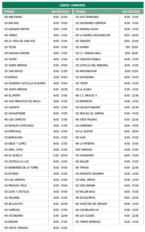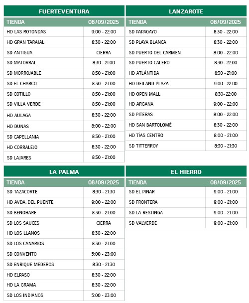 En cuanto a las entregas de compras online, estarán disponibles en todas las islas exceptuando los siguientes municipios de Gran Canaria, donde se entregarán a partir del 9 de septiembre: